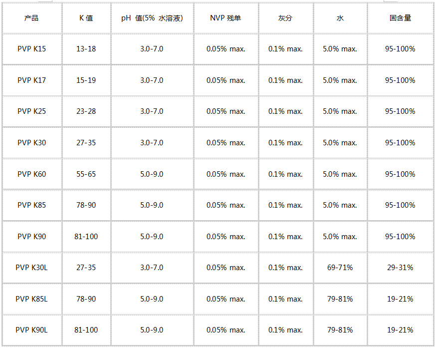 產(chǎn)品特性:工業(yè)級(jí)PVP以粉末和水溶液形式存在,易溶于水、醇及其他有機(jī)溶劑。極易吸潮,具有優(yōu)良的成模性,粘性、化學(xué)穩(wěn)定性,無(wú)毒等特性。