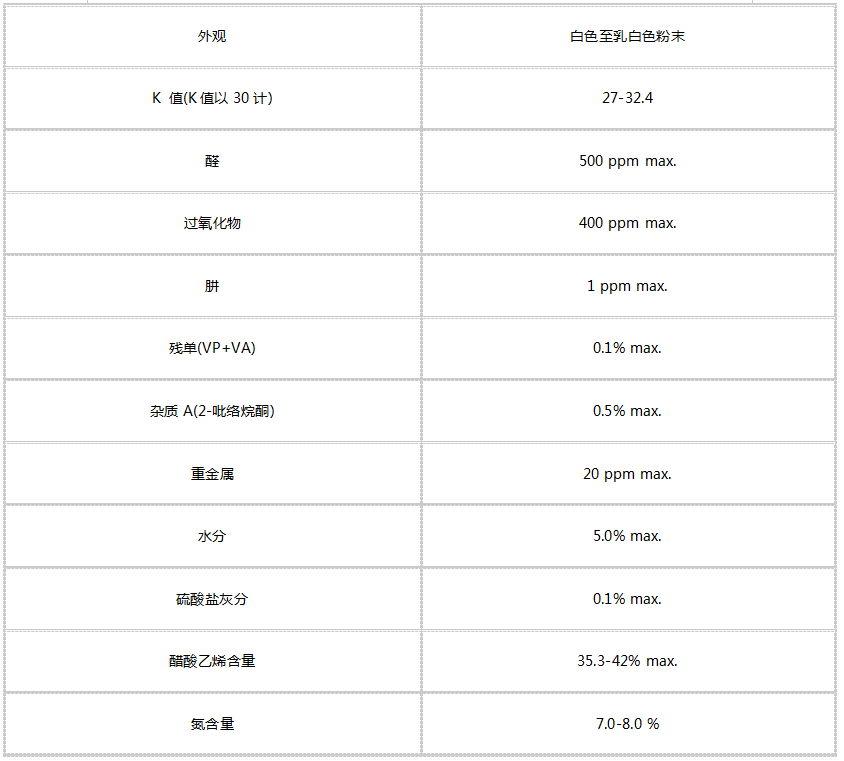 化學名稱:乙烯基吡絡(luò)烷酮與醋酸乙烯共聚物
