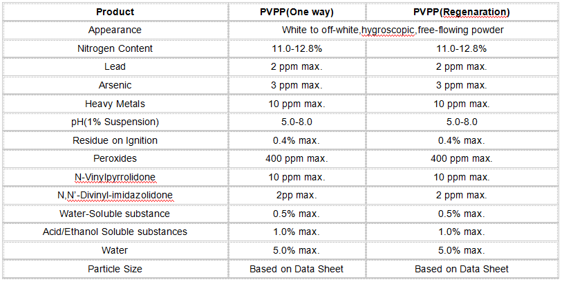 Product Properties: PVPP is hygroscopic,insoluble in water and all other common solvents,but it swells rapidly in aqueous solutbition without any gel froms.